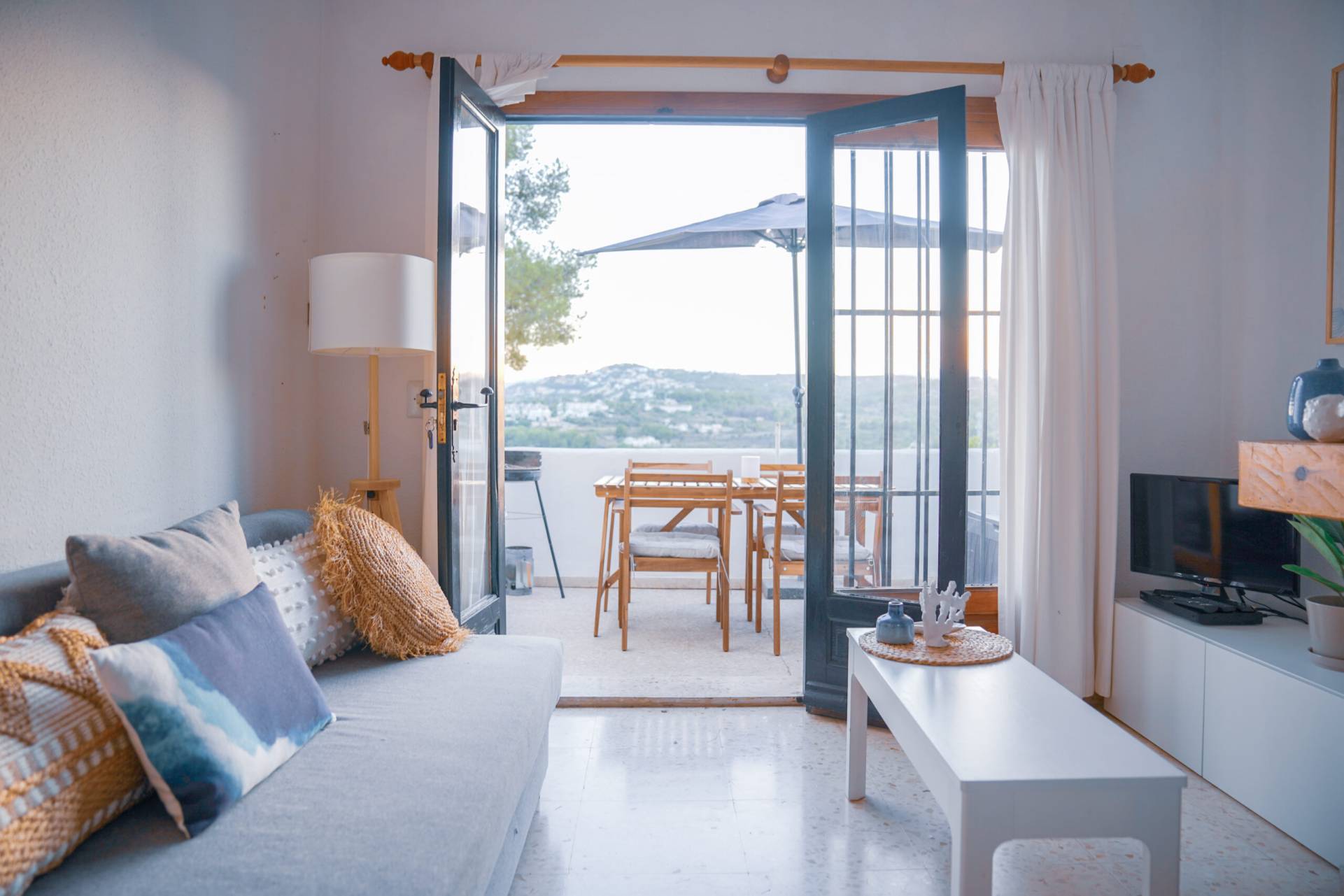 Dit serene zuidgerichte appartement biedt uitzicht op zee en de vallei, een rustige gemeenschappelijke tuin met een prachtig zwembad, en ligt op slechts enkele minuten van het strand van El Portret en het charmante Moraira. Beschikbaar voor overwinteraars. Het is de perfecte plek om te vertragen, adem te halen en gewoon te zijn.